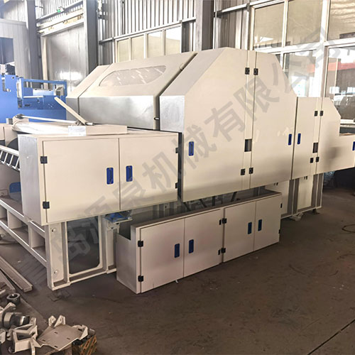 本機主要開松、梳理山羊絨、綿羊絨、牦牛絨、駝絨等動物纖維。經(jīng)過逐 級開松、梳理、去粗、去雜,使原料達(dá)到單纖維狀態(tài)供后道梳理工序使用 本機具有開松效果好、下機產(chǎn)量高、纖維損傷率低的優(yōu)點,是羊絨分梳聯(lián) 合機中的優(yōu)選設(shè)備之一。